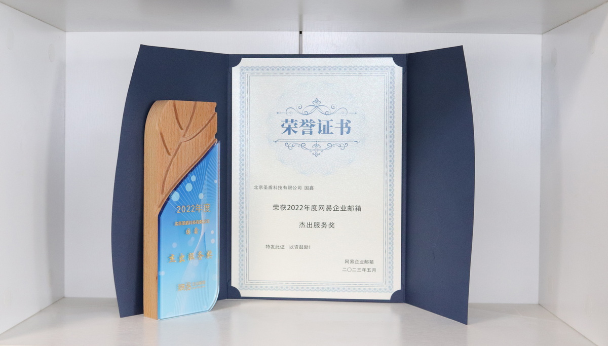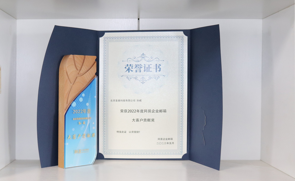 ↑ 北京聖盾科技有限公司榮獲網易企業郵箱《卓越開拓夥伴獎》,獎狀及獎杯